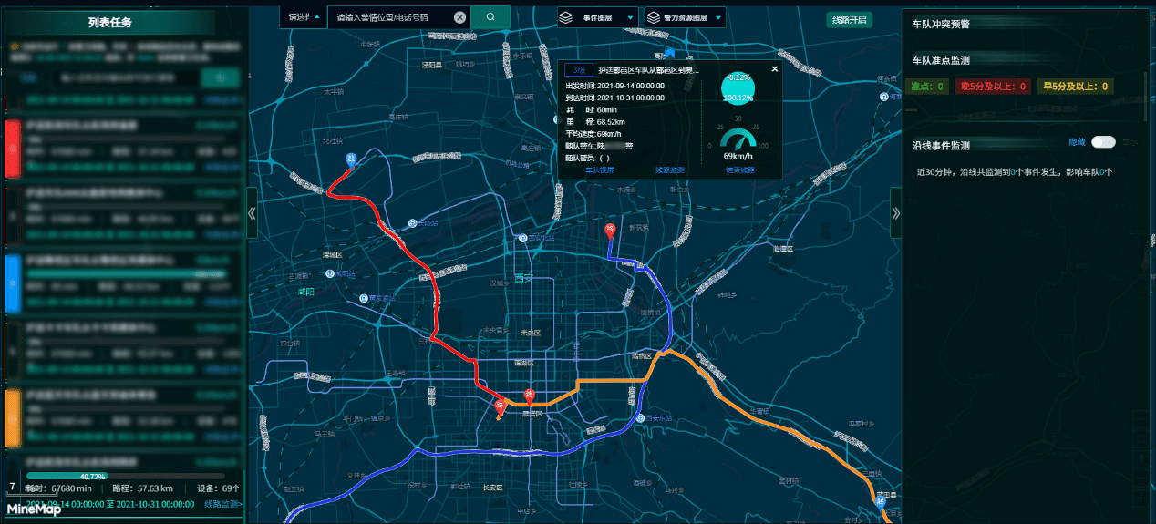 就大型运动安保,世纪高通针对警卫蹊径方面的问题研发了警卫安保系统,通过北斗+GPS双模定位装备实现对十四运赛事包管车辆的实时定位,对路径妄想建设的所有使命蹊径的运行情形举行监测,提供多车队联动及智能指挥调理,包管车队运行有序、抵达时间精准、应急处置惩罚高效,针对单蹊径还可实时审查车前车后视频和沿线监控。同时,世纪高通团结蹊径路面信息、实时路况和其他情报信息,制订最优清静警卫包管计划,为交通警卫安保和赛事运动车队蹊径包管提供了强有力支持。