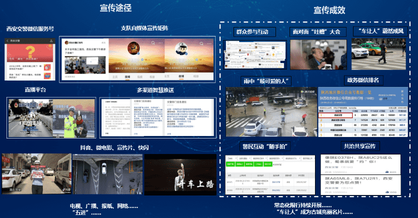 Î÷°²½»¾¯×ÔÓеĺ­¸ÇÁË΢²©¡¢Î¢ÐÅ¡¢APP£¬Ö§¸¶±¦ÔÚÄÚµÄÐû´«Ã½Ì徨Õó£¬Í¨¹ý¶¶Òô¡¢Ö±²¥¡¢Ã½Ì屨µÀµÈÐÎʽȫ·½Î»Ðû´«½»Í¨Õþ²ß¹æÔò£¬ÏȺóÓëÉÂÎ÷µçÊǪ́¡¢ÉÂÎ÷½»Í¨¹ã²¥µÈ¶à¼ÒýÌåÏàÖú£¬Ö¸µ¼ÊÐÃñʹÓÃ΢ÐÅÉϱ¨¡¢Ò»¼ü±¨¶ÂµÈÇþµÀ¼ÓÈëµ½Î÷°²µÄ½»Í¨ÖÎÀíÊÂÇéÖÐÀ´£¬¶Ô½»Í¨Î¥·¨¡¢²»ÎÄÃ÷ÐÐΪ¾ÙÐÐÆØ¹â£¬¶Ô½»Í¨ÕýÄÜÁ¿¾ÙÐÐÕÅÑï¡£ÏÖÔÚ£¬Î¢ÐÅËæÊÖÅÄÖÜÉϱ¨´ï4000¶àÀý£¬×ÜÁ¿¿¿½ü40Íò£¬ÔÚÈ«Éç»áÐγɹ²Öι²½¨µÄÓÅÒì½»Í¨Æø·Õ¡£±ðµÄ£¬Î÷°²½»¾¯Ò²Ê¹ÓÃ×ÔýÌ壬ʵʱÐû²¼ãåÈÕ¡¢±°ÁÓÌìÆøµÄ½»Í¨Ô¤Åб¨¸æ£¬Ö¸µ¼ÊÐÃñ³öÐС£