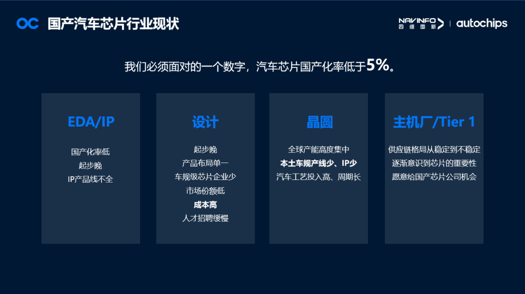 ±¨¸æÌáµ½Ò»¸öÑÏËàµÄÊý×Ö£ºÖйúÆû³µÐ¾Æ¬¹ú²ú»¯ÂÊȱ·¦5%£¬´ÓÉÏÓεÄEDA/IP·þÎñÉÌ¡¢Éè¼Æ³§ÉÌ£¬µ½¾§Ô²ÖÆÔ죬ÔÙµ½ÏÂÓεÄÖ÷»ú³§ºÍTIER 1Ó¦Óã¬Ã¿¸ö»·½Ú¶¼±£´æ×ÅһЩÎÊÌâ¡£ÎÒÃDZØÐèÉî¿ÌÊìϤµ½×ÔÉíµÄÎÊÌ⣬²Å»ªÕÒ³ö¶ÔÓ¦µÄ¾öÒé¡£